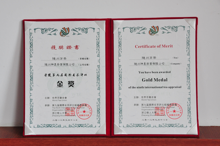 2012年9月,我公司生產(chǎn)的“隨州芽茶”榮獲第九屆國際名茶評比“金獎”